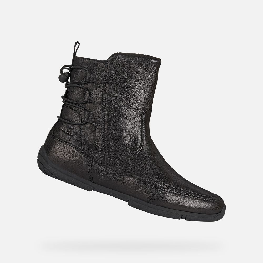 Women’s refined ankle boot set on a comfortable mid heel. Anylla Mid is a refined ankle boot with guaranteed comfort levels that is ideal for office days and dinner dates alike. The upper in plain black leather has a beautiful silhouette and boasts an inner-leg zipper that makes it easy and practical to slip on. With a highly innovative design, the outsole enhanced with Geox-patented technology is breathable and allows for the natural thermo-regulation of the foot. The practical, hygienic leather-covered footbed contributes to the sensation of well-being and ensures a blissful feeling of comfort and dryness. The TR tread makes for light effortless walking and also gives an effective grip and extreme durability. On the other hand, the shape-memory foam footbed provides a cushioning effect and means that Anylla Mid is a piece of footwear that is so comfortable it can be worn all day long.