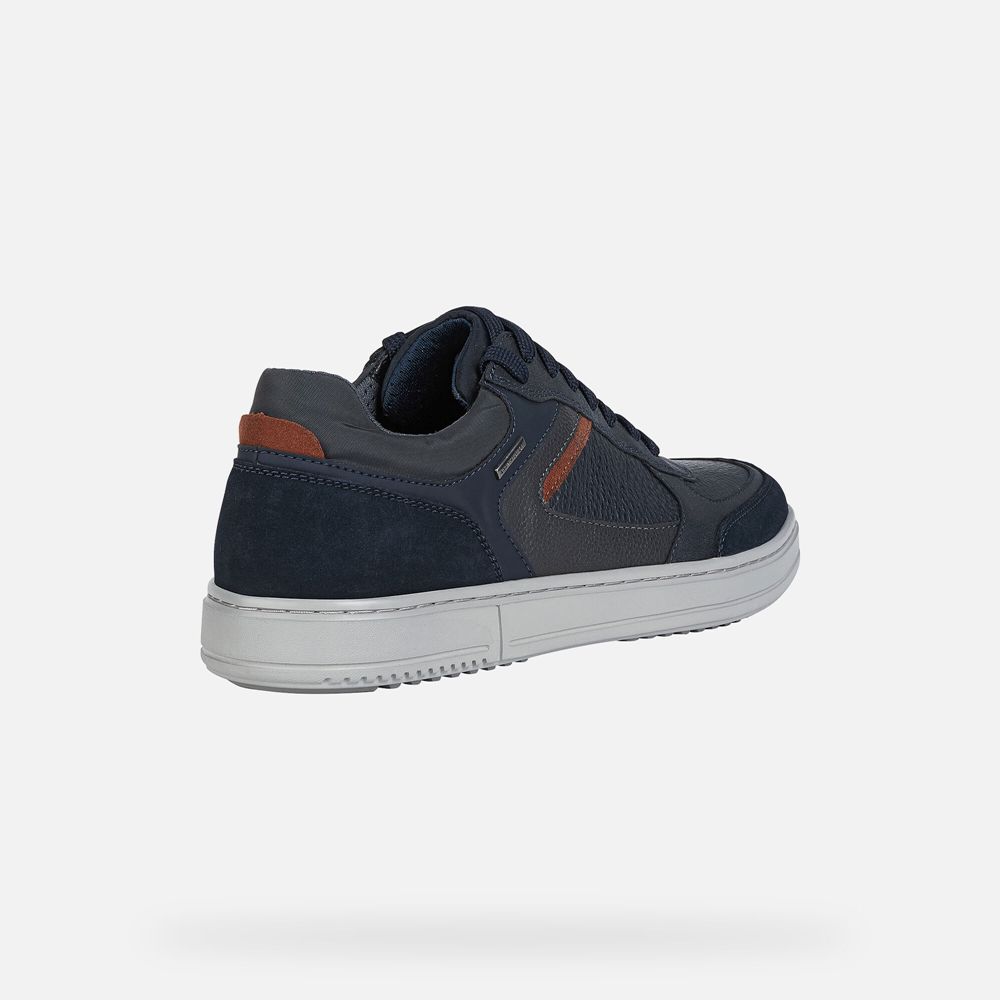 The navy-blue upper in tumbled leather and suede leather, with contrasting orange details, gives Levico ABX a versatile and refined look. Waterproofing of the upper is guaranteed by the Amphibiox™ technology, while the Geox-patented breathable system facilitates natural thermo-regulation of the feet. The EVA outsole ensures lightness, flexibility and cushioning. The mesh lining helps optimize breathability of the sneaker. The removable footbed is practical and hygienic and has a leather covering that gives a pleasant sensation of dryness.
