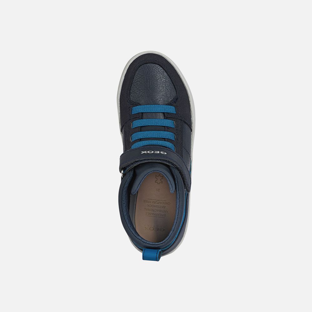 Made in a navy-blue palette with teal detailing, Alonisso has been made from a tumbled leather-effect material and a suede-like material, creating a fresh trendy contrast. Providing this piece of footwear with flexibility, extreme durability and an efficient grip, the vulcanized rubber sole is an attractive counterpoint in terms of style and color. Breathable and comfortable, the outsole has been enhanced with our Geox-patented technology while the footbed (removable for the sake of practicality and hygiene) has been covered in chrome-free non-toxic leather for added dryness and comfort. The adjustable fastening with a velcro strap and elastic lacing makes it extremely comfortable for the child's foot.