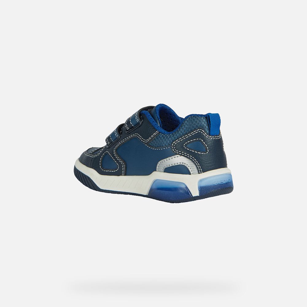 Crafted from fabric and a tumbled-leather-effect hi-tech material, Inek comes in a blue palette and emanates sporty verve. The double velcro strap fastening means that this shoe can be slipped on easily and adjusted effortlessly to fit the foot. The lights built into the outsole, which can be activated via an on/off switch, make this sneaker even more fun. Light, durable and boasting an efficient grip, the TR outsole has been enhanced with exclusive Geox-patented technology which ensures breathability and a blissful sensation of well-being. The removable footbed, which ensures practicality and hygiene, increases the sensation of comfort thanks to the covering in chrome-free leather, a non-toxic material which helps to keep feet dry and safeguards children's health.